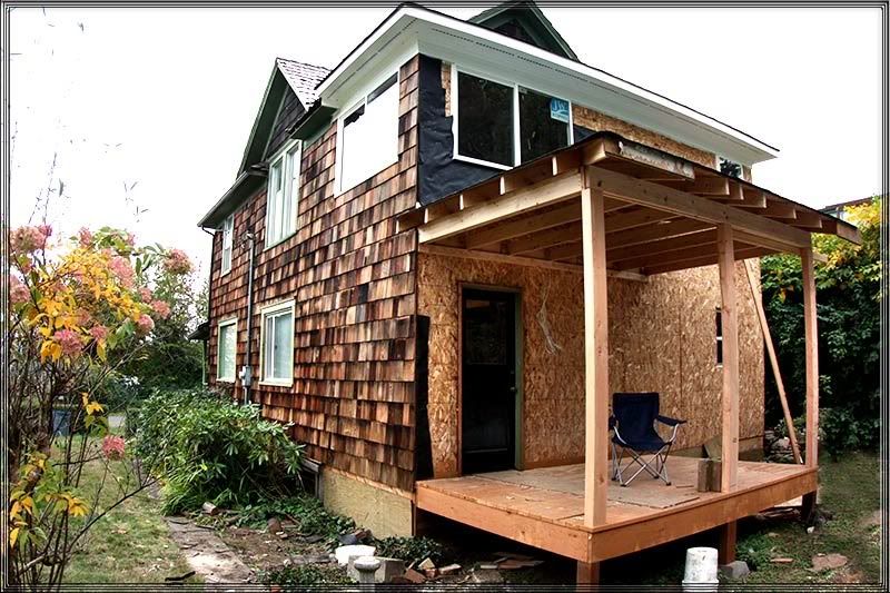 the addition and the new back porch... I just finished up on shingling the two roofs today.