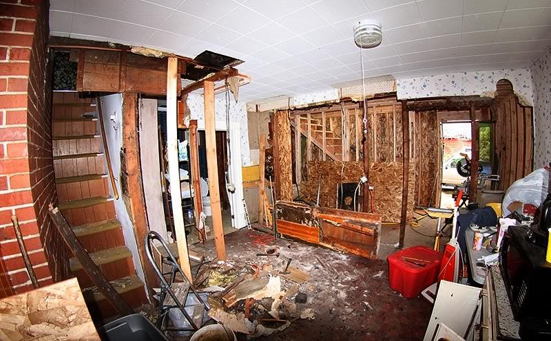 Demolition begins... the removal of the rotten back porch